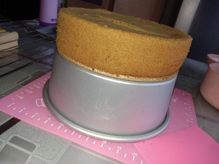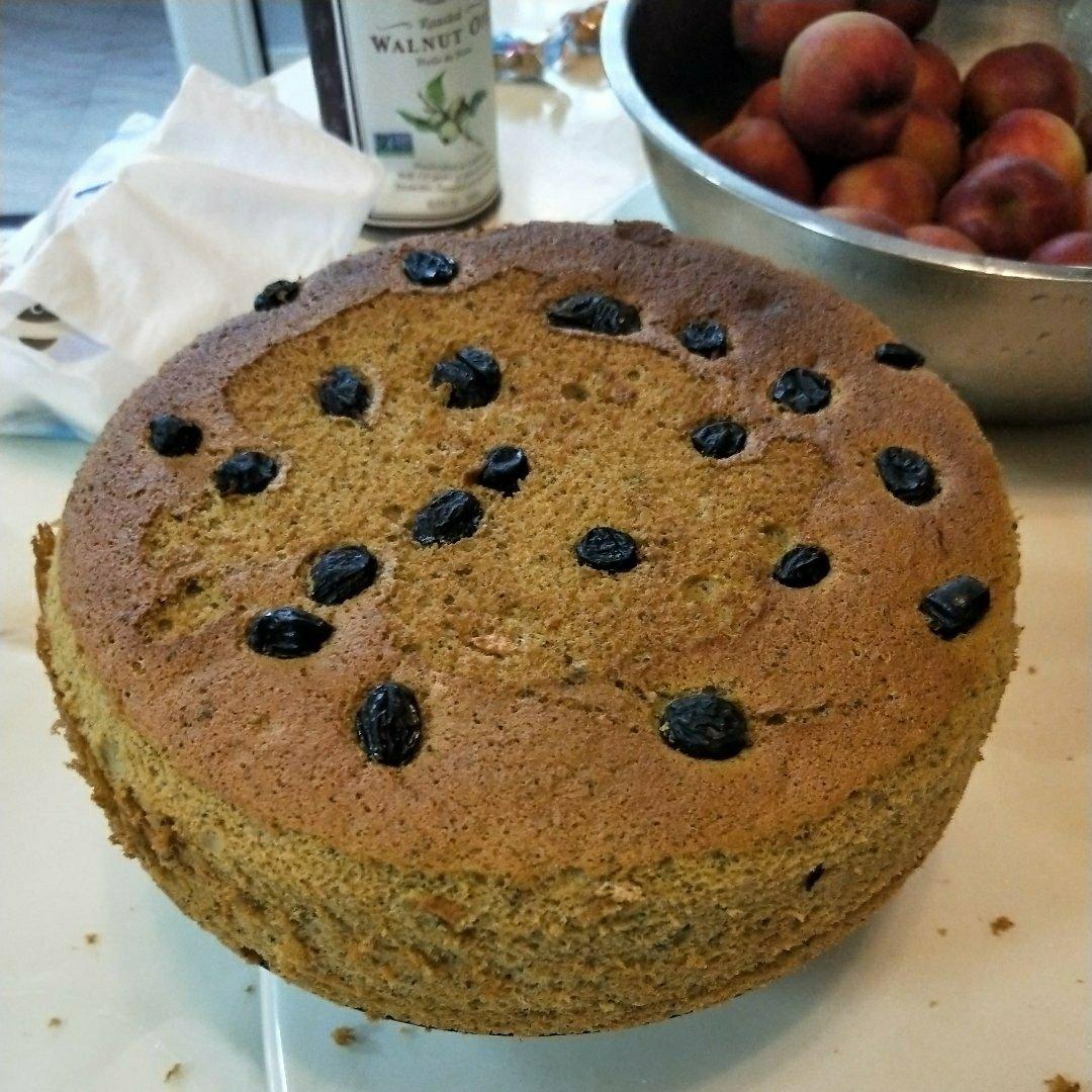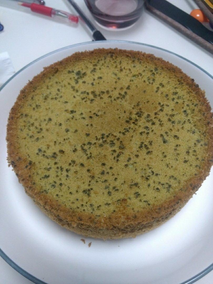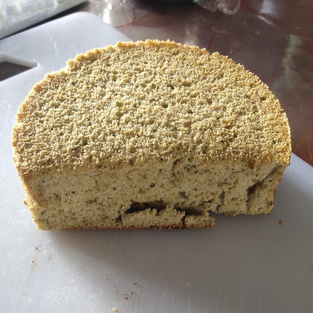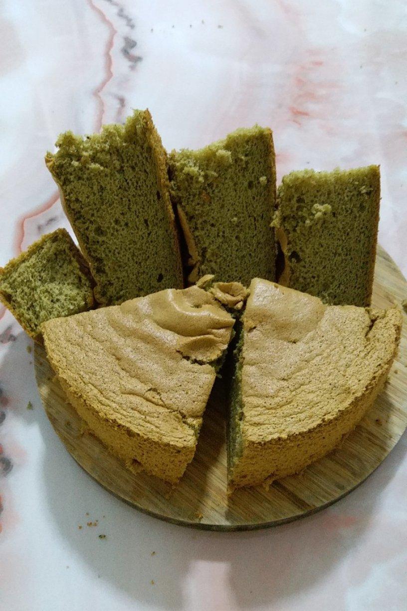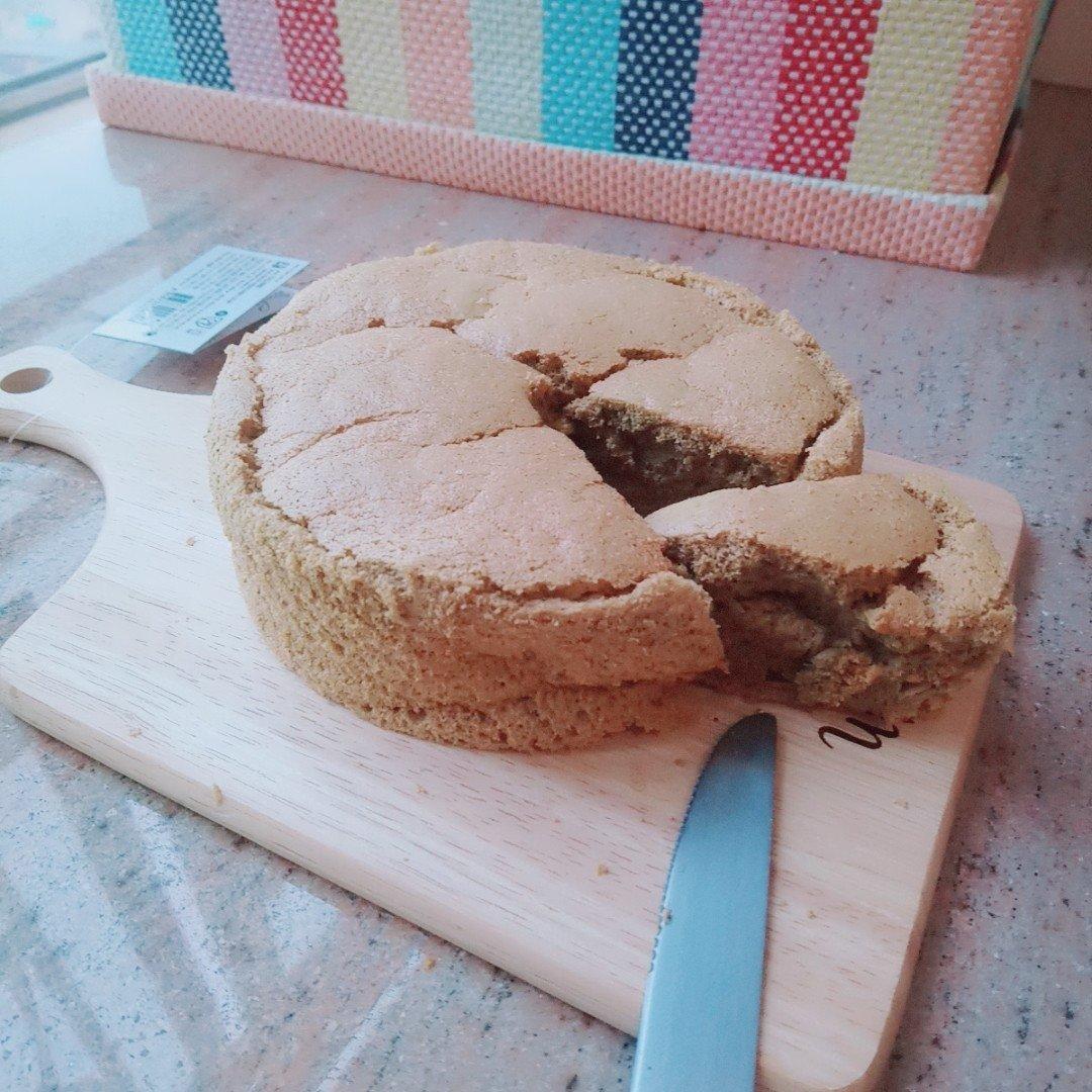 抹茶戚风,做的比第一次好一些,之前比较蓬松了。但是这个抹茶是不好吧,看出来是棕色的了,不绿。