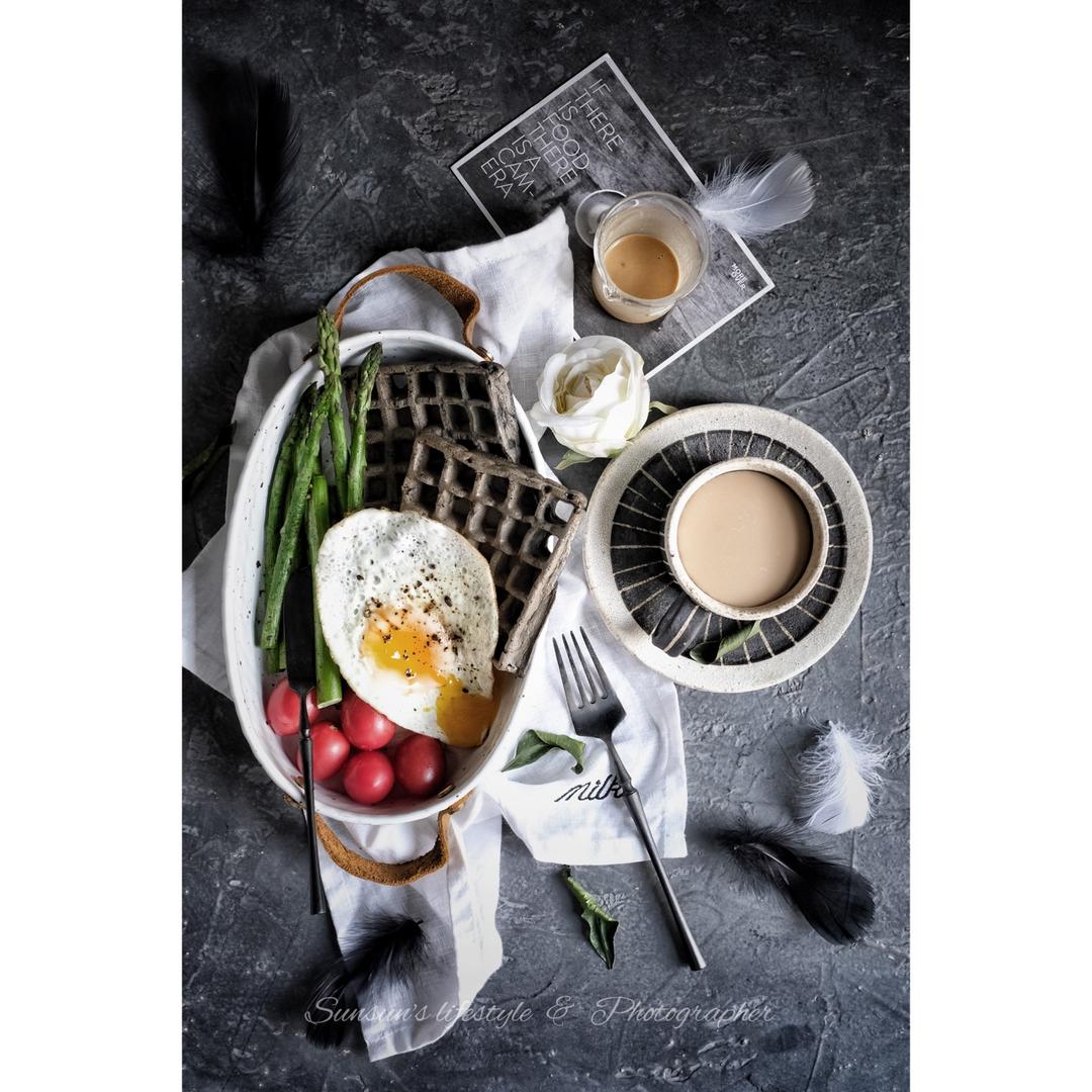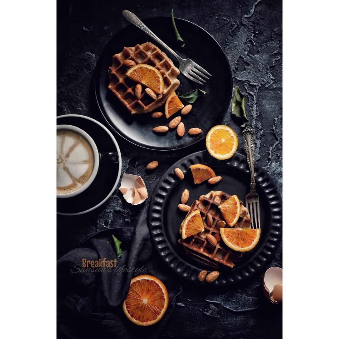 【无油糖墨鱼汁全麦华夫配pb2花生酱】咸口华夫也好吃啊!配个花生酱夹个煎蛋!不噬甜的我觉得很满足了!上周的约饭...