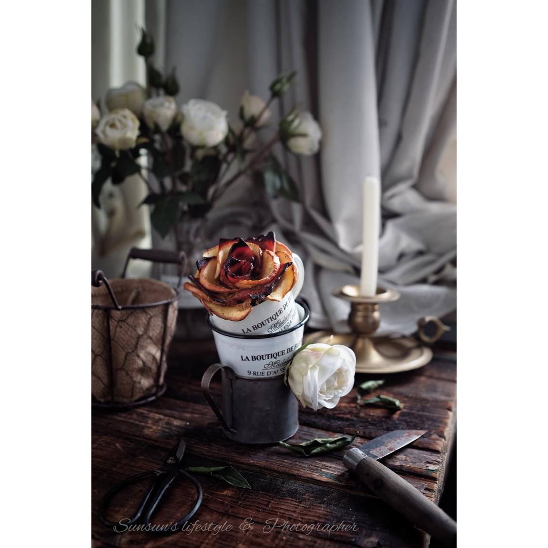 和阿花约我花!所以这次做了个多肉植物一样的花!小杯子没装下,下面杯子还有,但是也没有用到一个苹果,用了两片培根。真的是好...