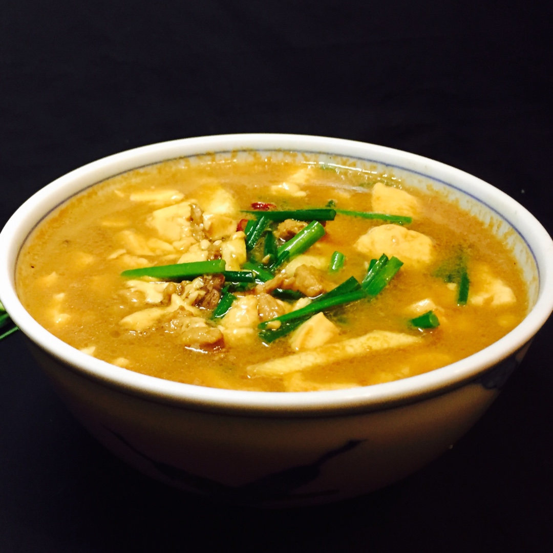 红烧豆腐,放了肉片、茭白、韭菜花,还有两只朝天椒七夕快乐!😊😊😊💐💐💐