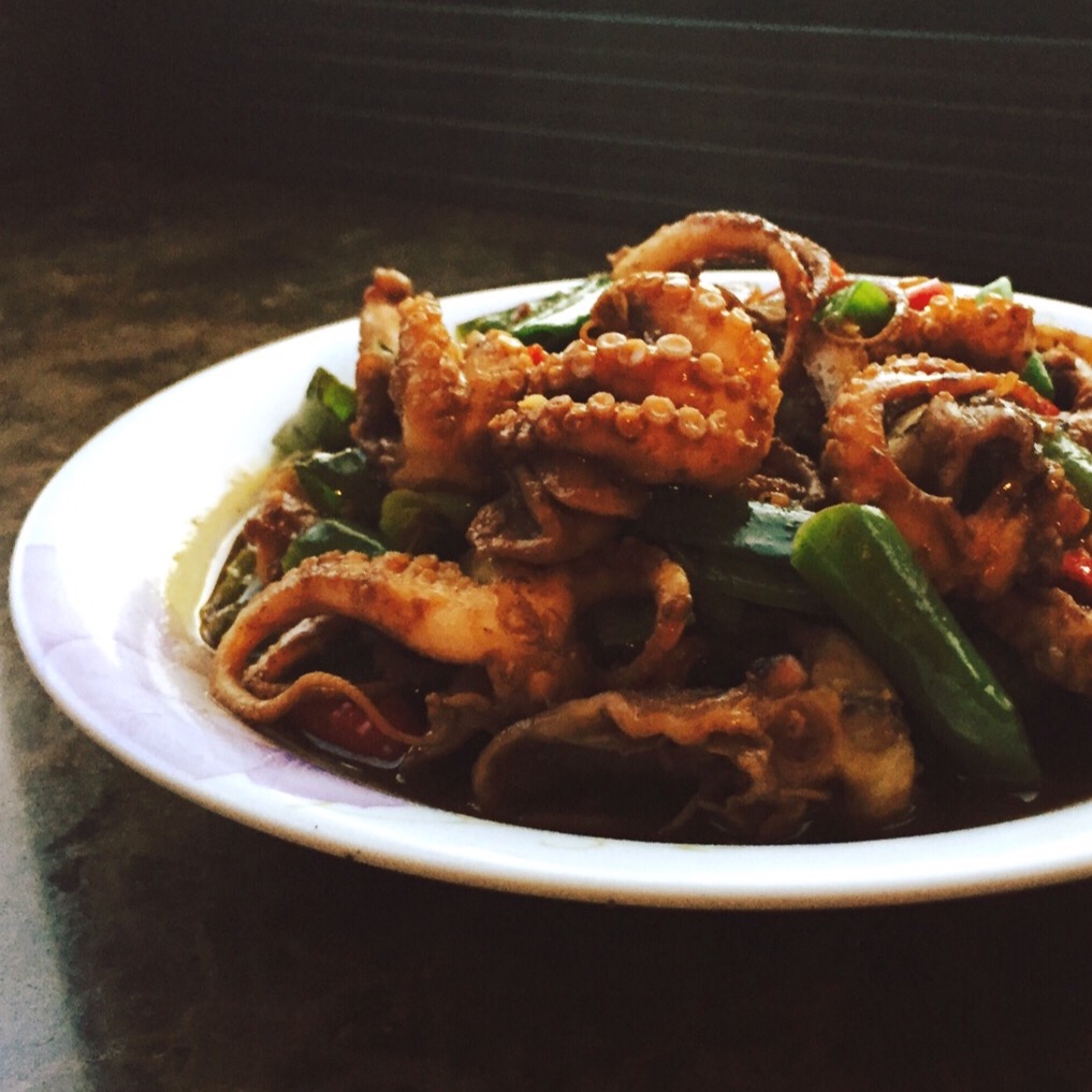 辣炒八爪鱼,天快黑时的自然光拍出来有点暗了