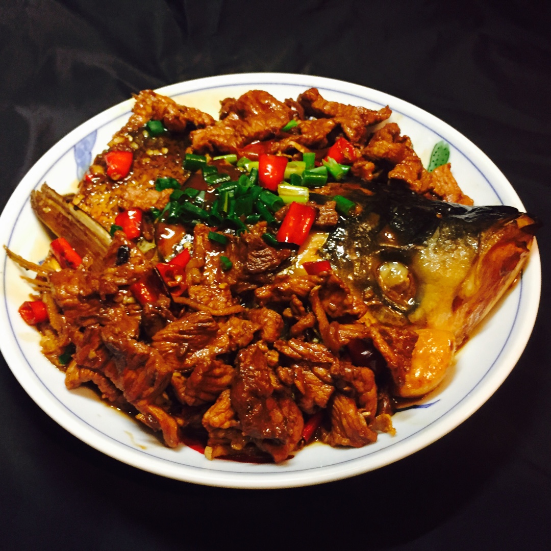 红烧鱼头+肉片,俺爱吃鱼,小公子不爱吃红烧鱼,那就来个一鱼一肉一锅焖,看你吃不吃,事实是俺吃鱼头,小公子吃肉片,哈哈哈哈...
