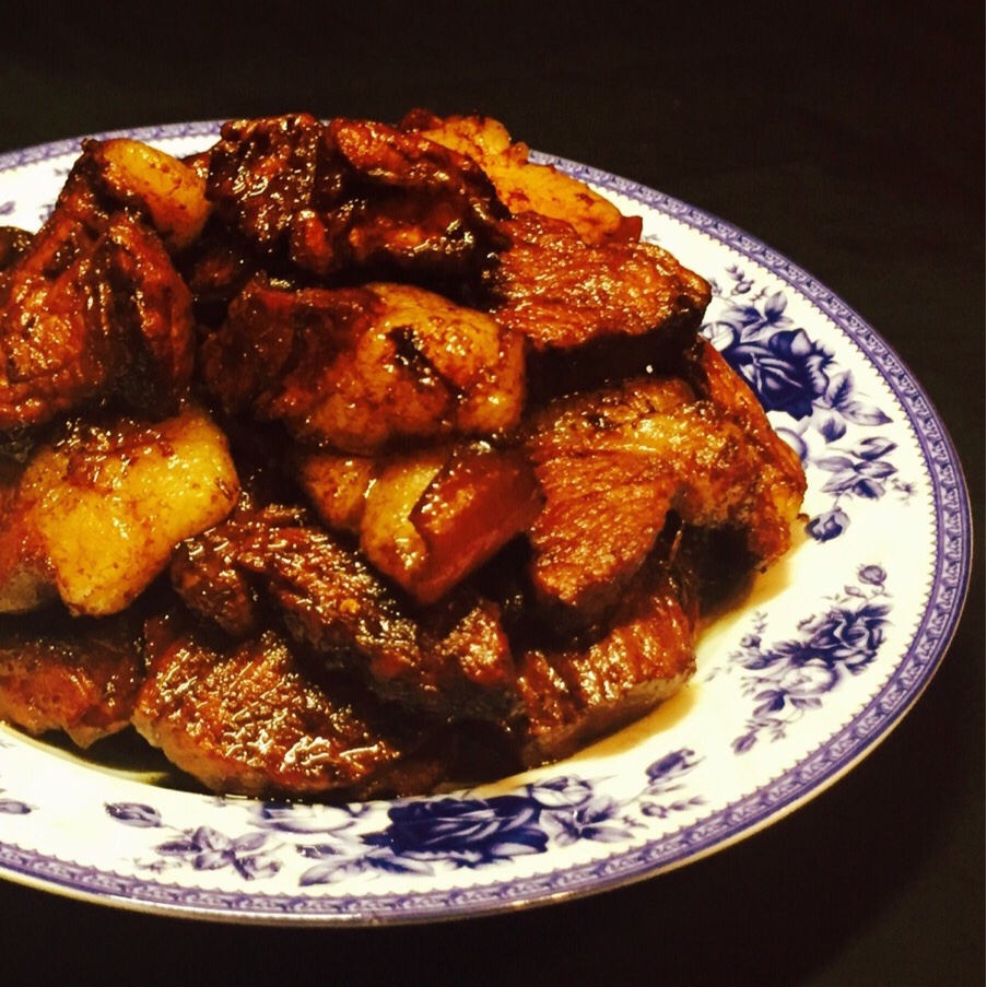 红烧肉,其实是本来不想做饭所以没买菜,最后从冰箱找出了这块土猪肉,烧了这一盘,味道很不错,不过俺就尝尝味道