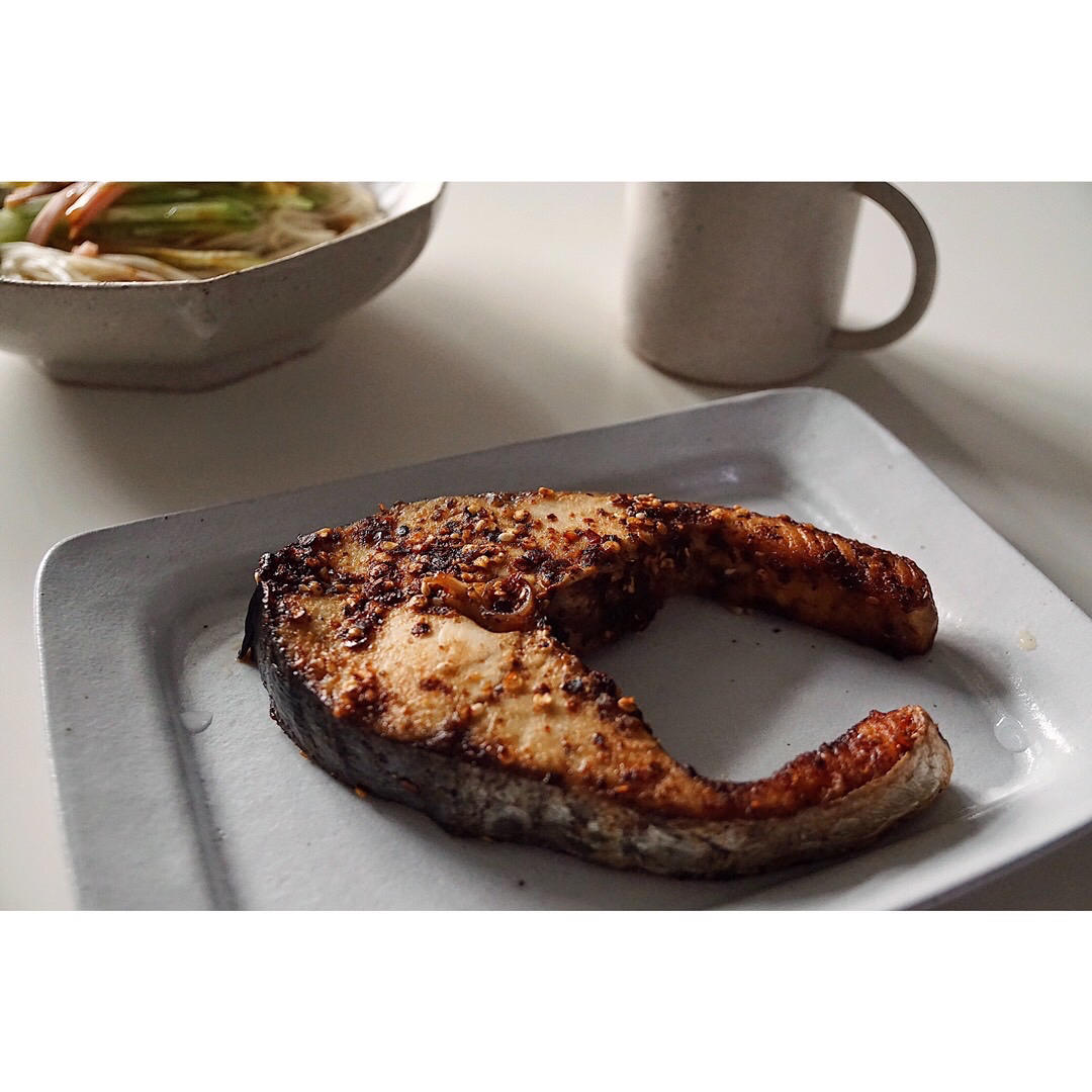 第一次烤马鲛鱼,居然很好吃。