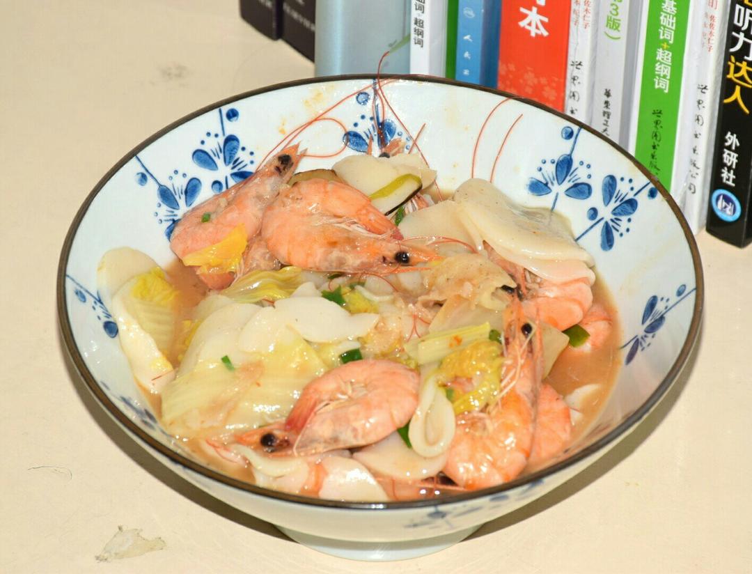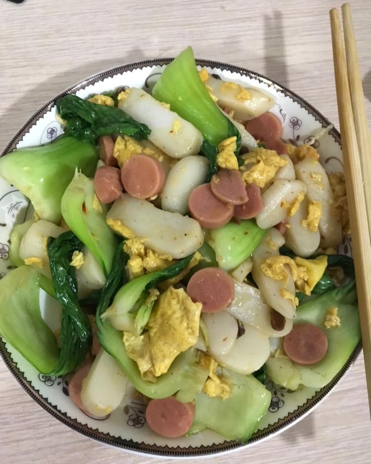用火锅年糕做的宁波炒年糕。味道还是不错的