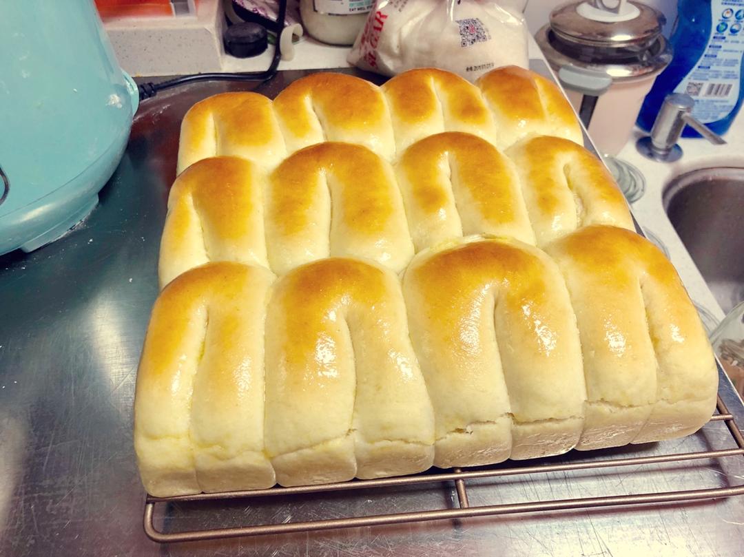 老面做的吐司🍞,感受下拉丝感、非常绵软。