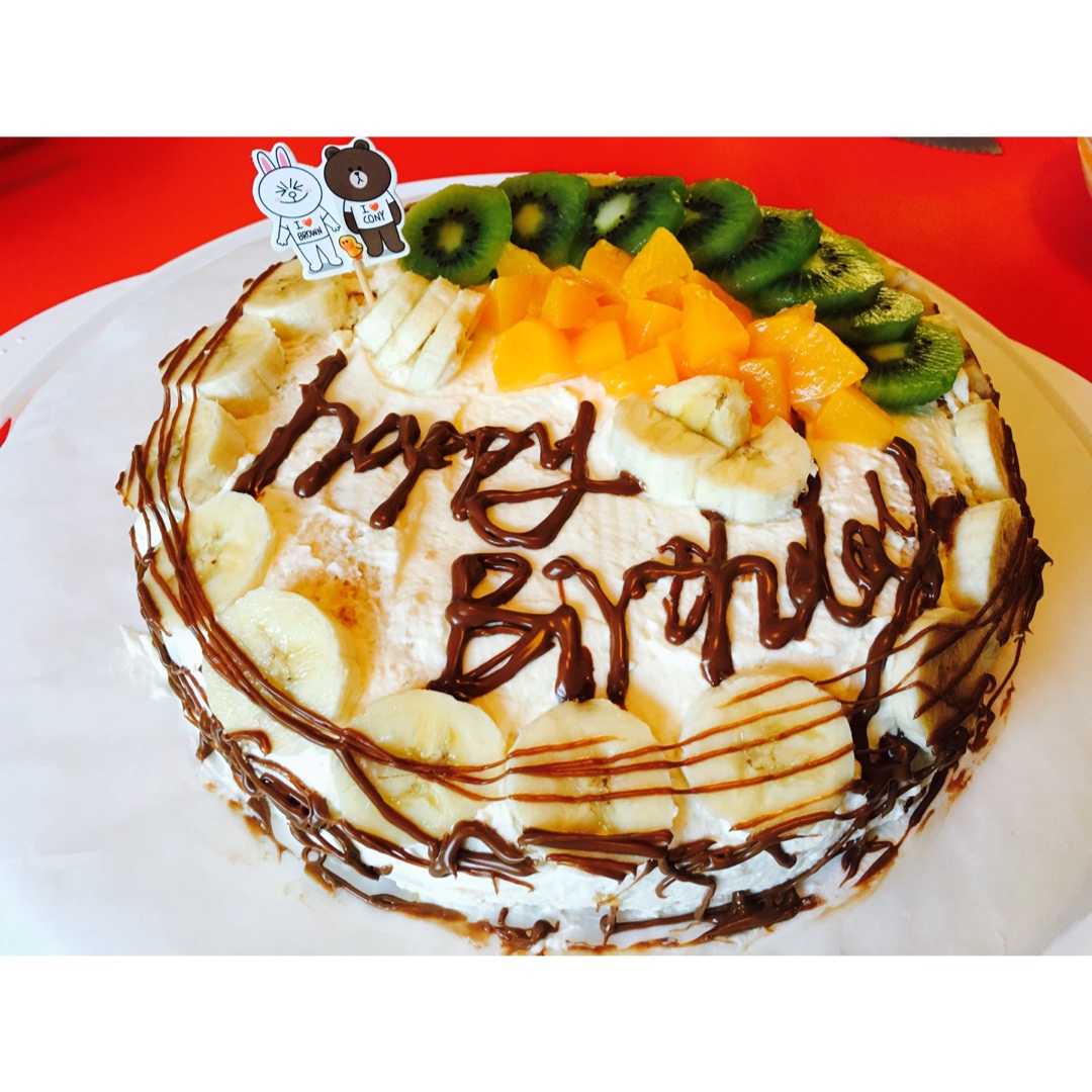 用了这个蛋糕底给新认识的德国🇩🇪女生做了一个生日蛋糕,好吃💕加了line的蛋糕萌萌哒😘