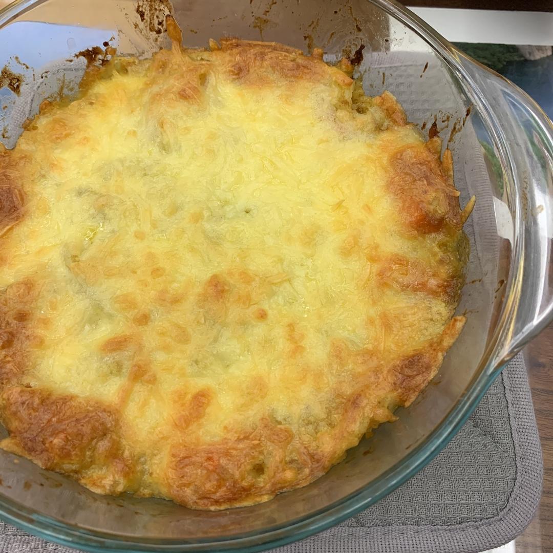 因为低碳所以没有拌米饭,味道超级好!也是用干酪混合马苏里拉,除了中间烤焦了一点,但是不影响味道!