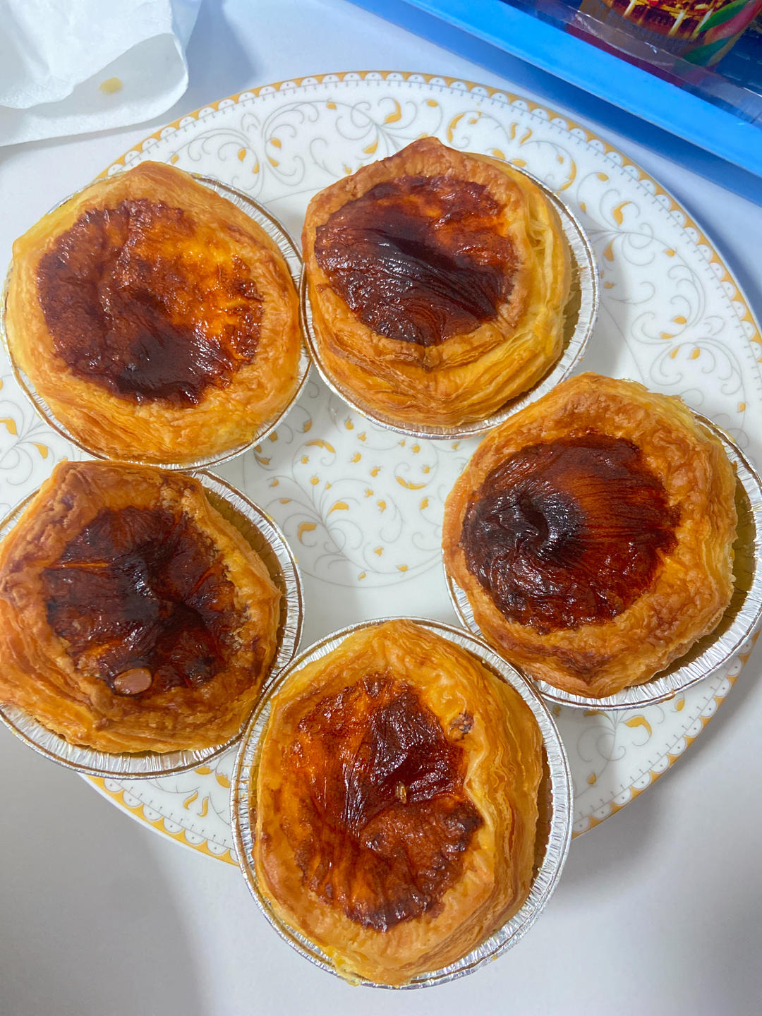 空气炸锅烤出来的蛋挞,颜色也真是好看呢~