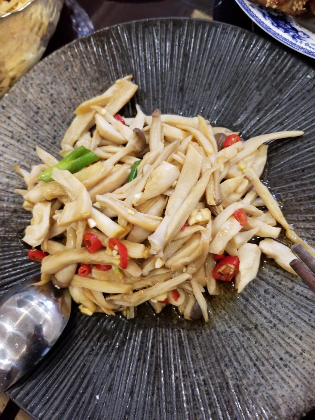 用油炒香了姜蒜末后放入杏鲍菇翻炒热后,就不担心太凉了,口感也不错哟!