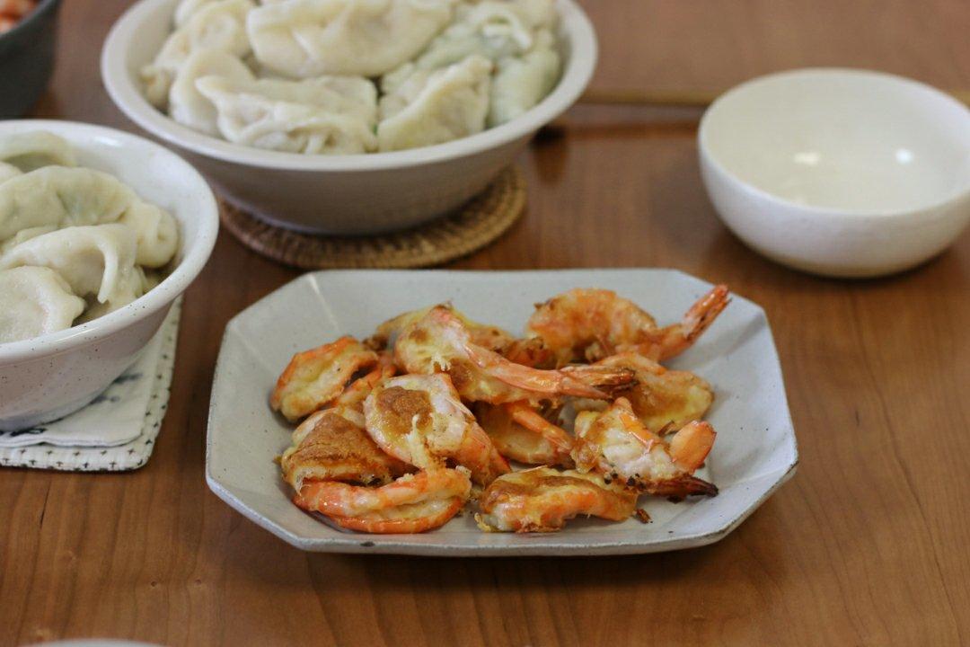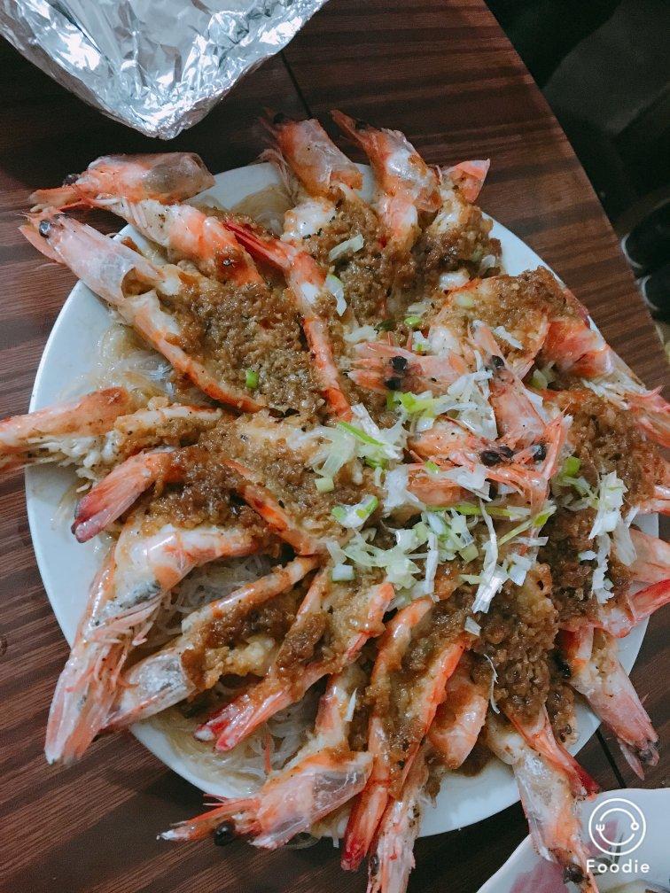 蒜蓉蒸开背虾。虾有点多,摆不出造型了。😃