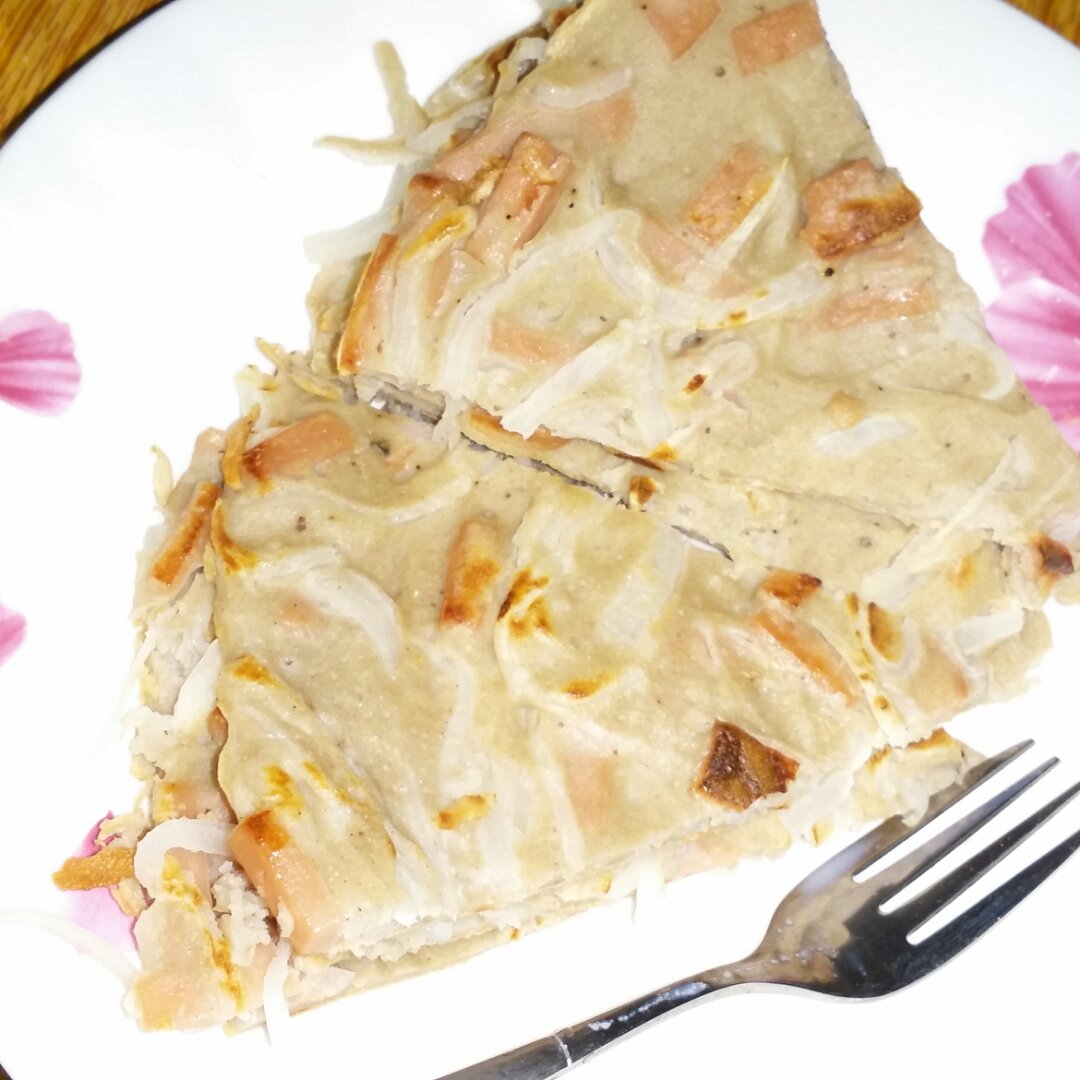 白萝卜丝火腿摊饼,加杯牛奶,一份水果,又开始美好的一天,早安!
