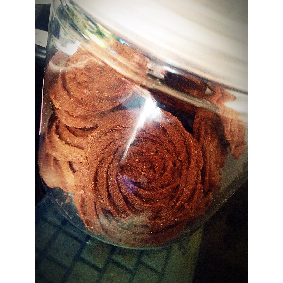 哈哈哈 微波炉做的~ 糖粉没了用的白砂糖 ➖10g 觉得还是不减比较好 😁 第一次挤曲奇🍪 手生 … 装罐子里 高大上...