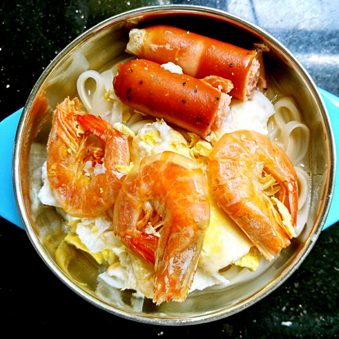 女儿的大虾鸡蛋肠仔面