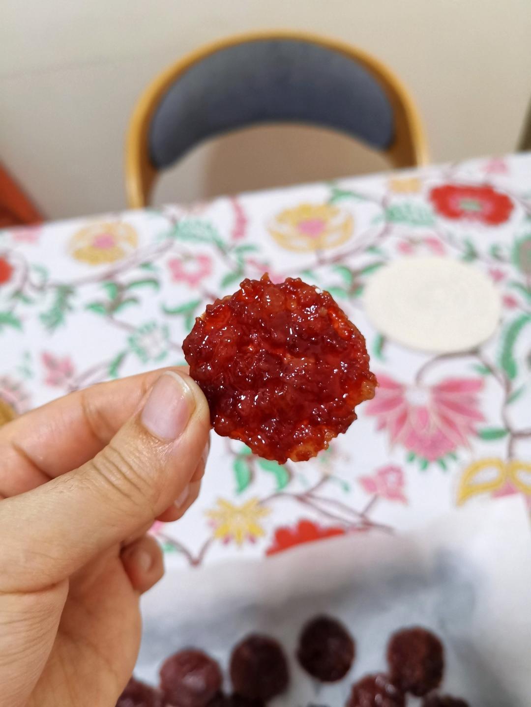 楼主的配方太太太棒了! 一次做成功 秘诀就是肉一定要打起胶,盐我没有加,糖我放了40,做出来的口感和新加坡的美珍香没有差...