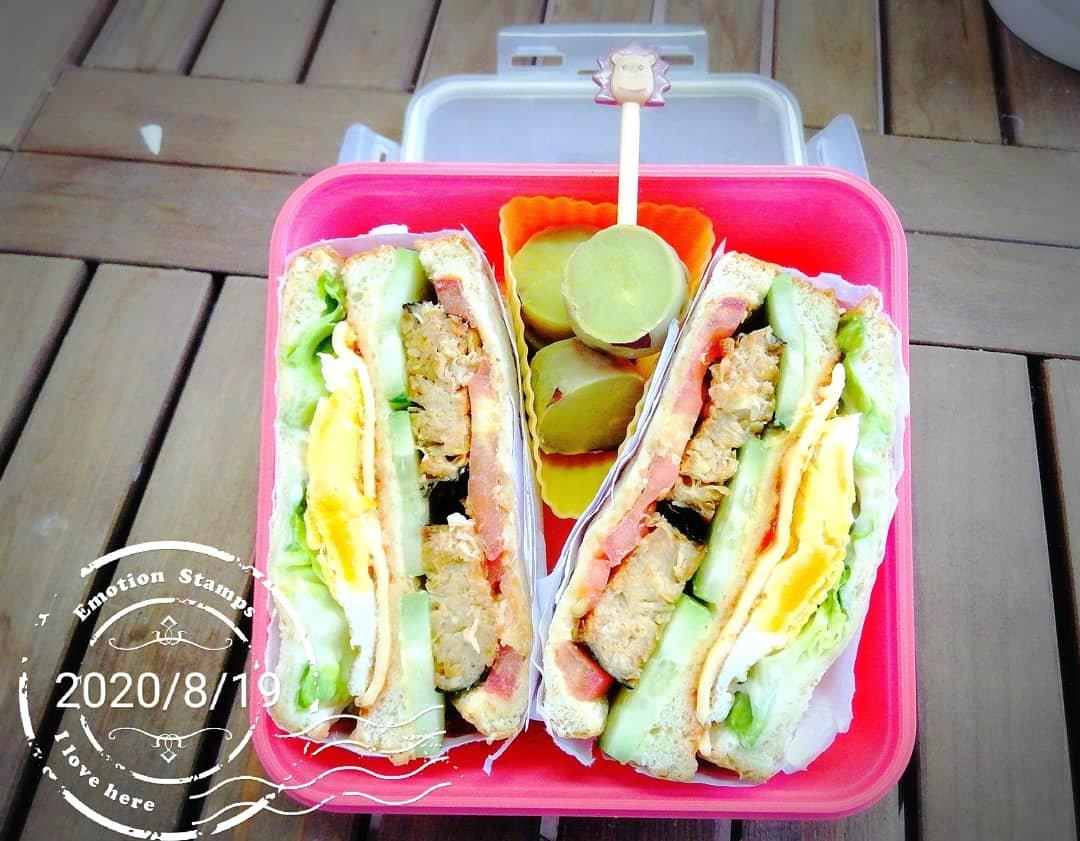 農曆七月初一~小肥陪我一起吃素鱼三文治🥪🥪🥒🍅