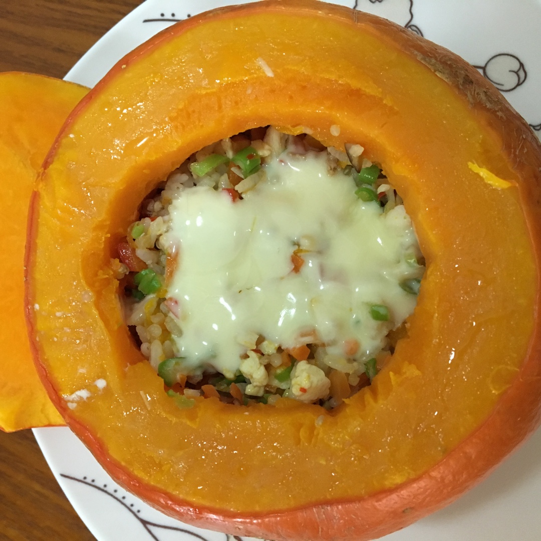 营养丰富极了的南瓜盅,一顿满足所有营养需要,好看又好吃,宝宝十分钟吃完了