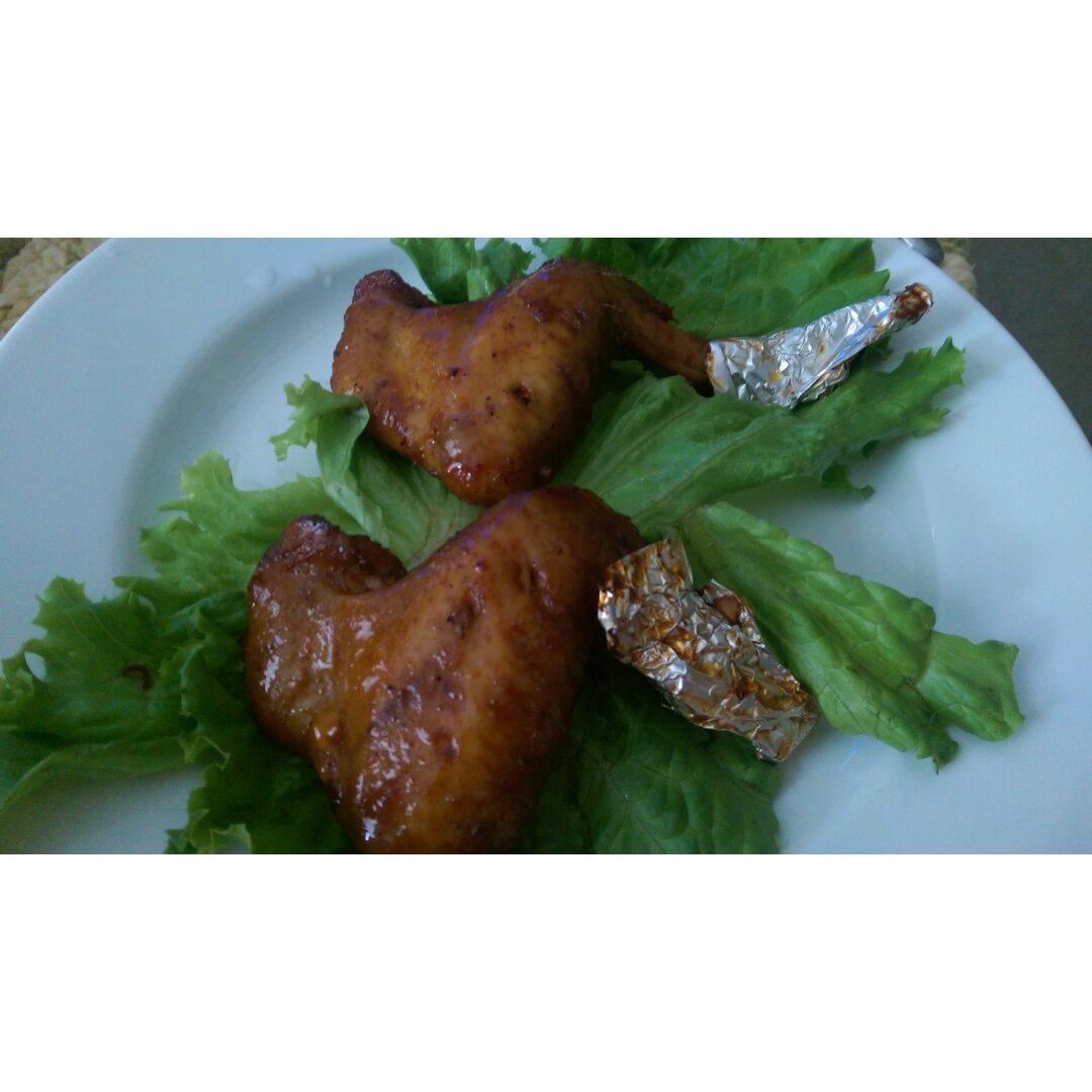 跟肯德基有的一拼,我直接放锡箔纸上烤的,有点焦,可能要把锡箔纸四周折叠起来,这样油啊汤汁不容易跑偏,就不容易沾了