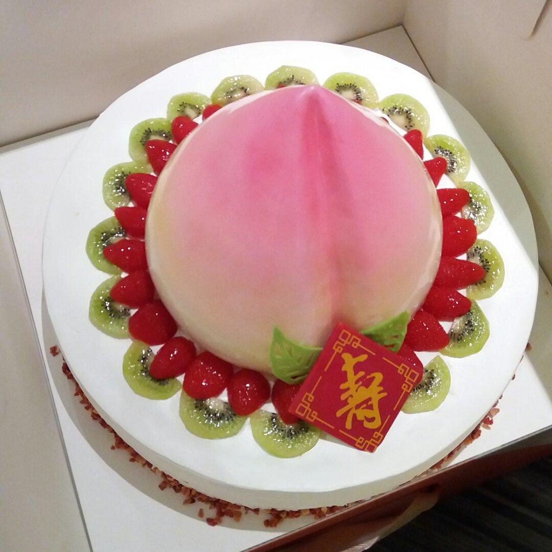 超级寿桃大蛋糕^_^外层奶油,上面草莓🍓和巧克力超好吃,大爷在巧媳妇家...
