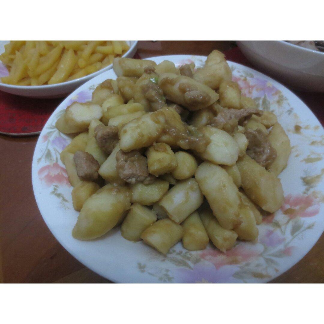 老爸做的山药炒肉超好吃,煮过的山药炒出了厚厚的沙,特别...