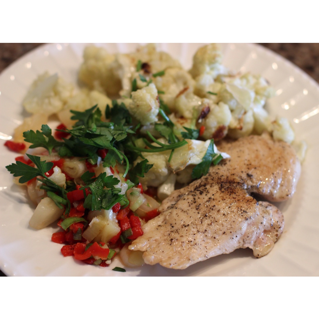 鸡胸肉配烤菜花