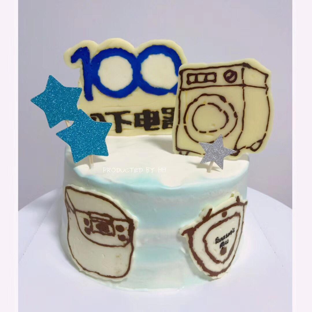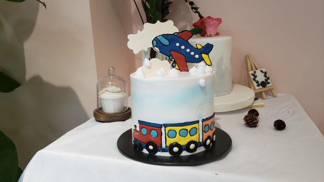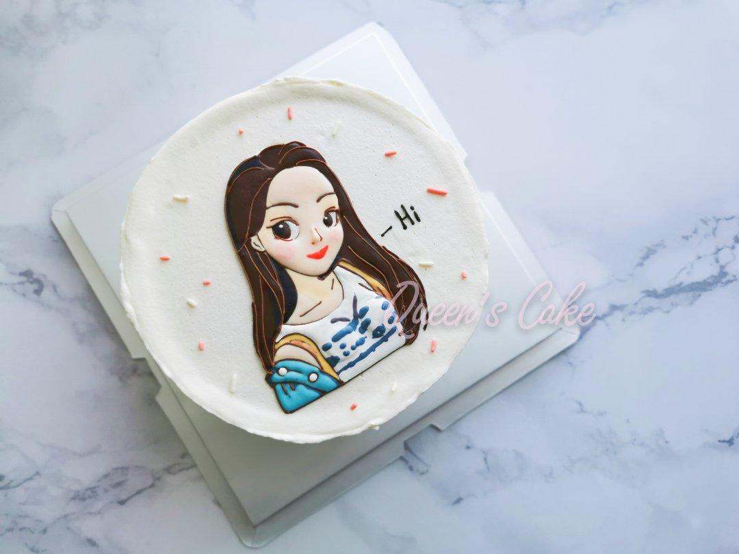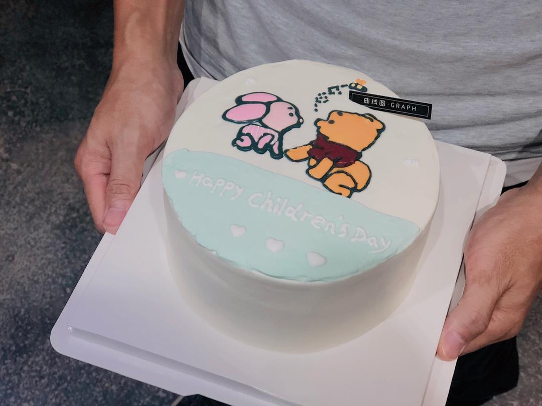 鲜奶油水果蛋糕,图案是用了芝士转印的方法。这样奶油蛋糕又好看,又好吃