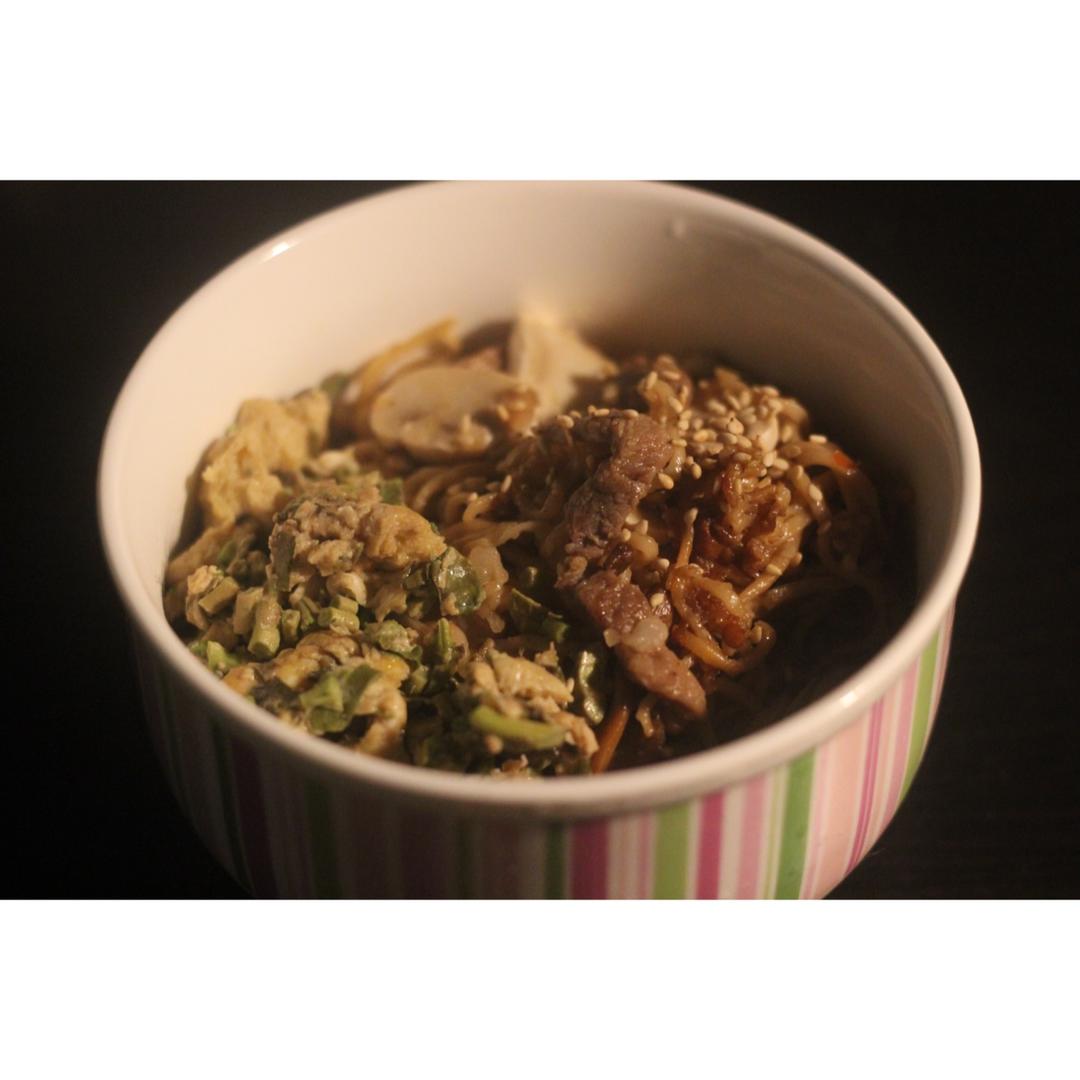 放了包菜和洋葱,为什么颜色这么淡呢!因为我炒到一半准备放韩式辣酱的时候发现它坏掉了,没办法只好放了点番茄酱和辣椒粉抢救一...