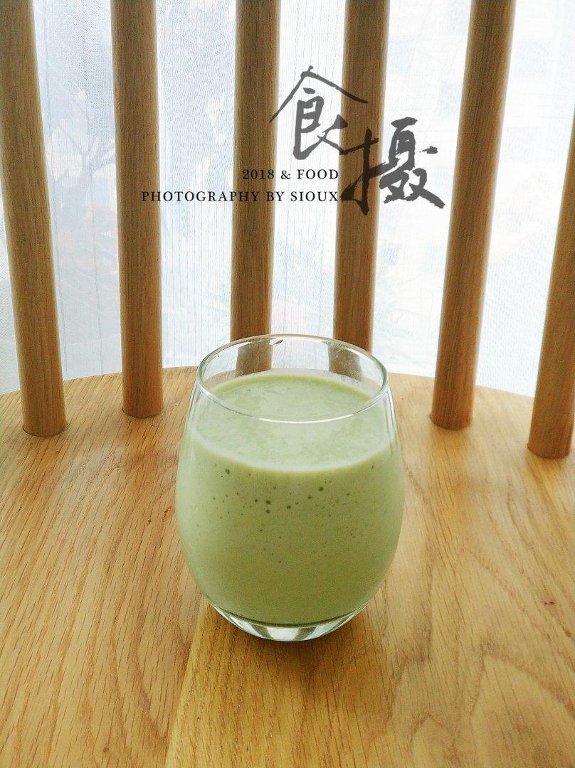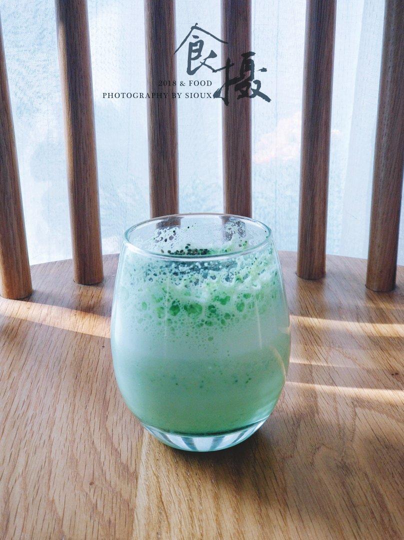 青瓜奶昔,加了一点点抹茶粉,还有奇亚籽
