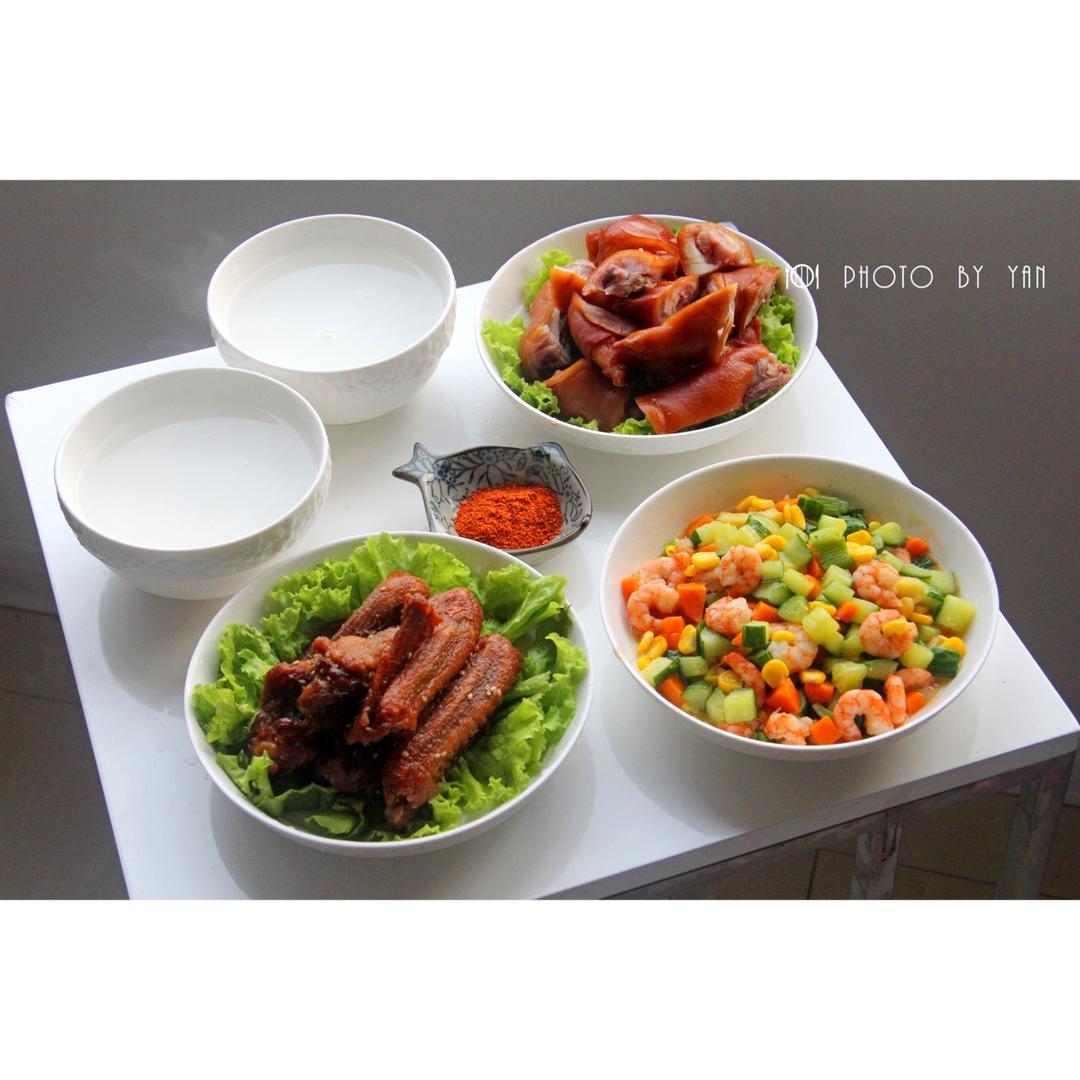 晚餐💕三色炒虾仁,百味鸡的鸭翅,卤猪蹄。每次开总管去张店都会买好些百味鸡的吃的回来,最爱这个鸭翅!可惜在孕期不敢多吃,只...