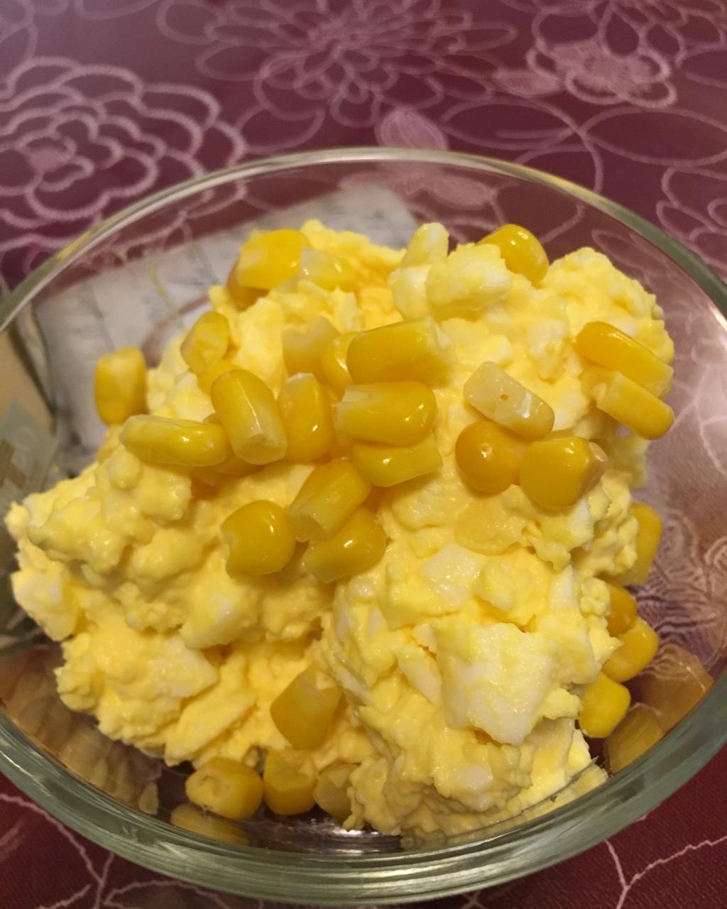 昨天早餐,鸡蛋沙拉,鸡蛋和玉米粒很配哦!