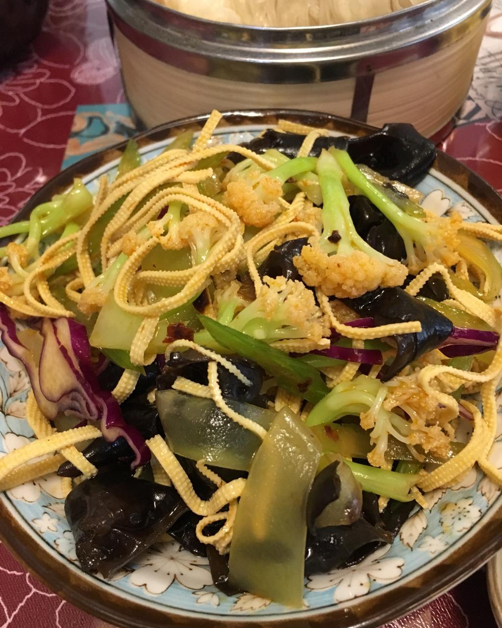 素什锦,各种蔬菜焯水后拌一起,很棒!