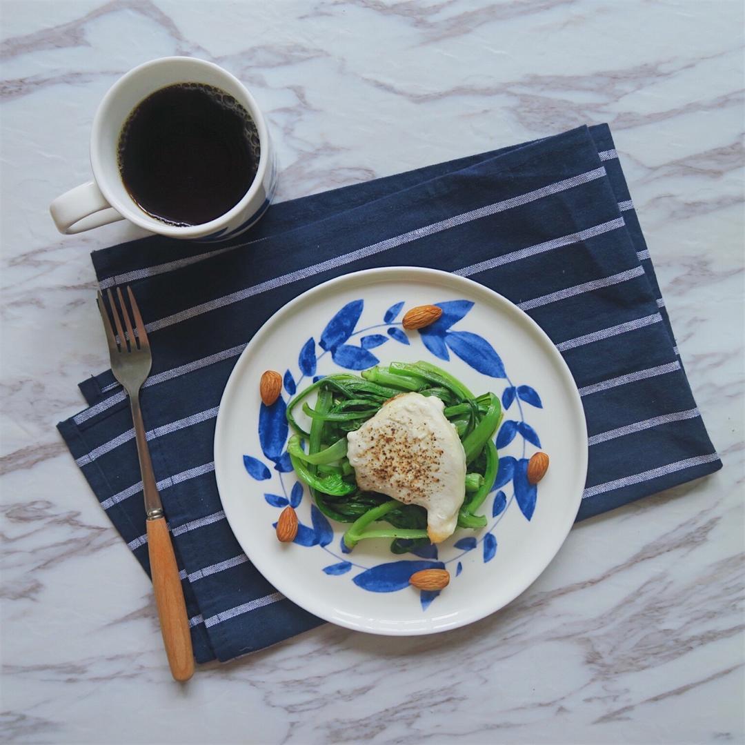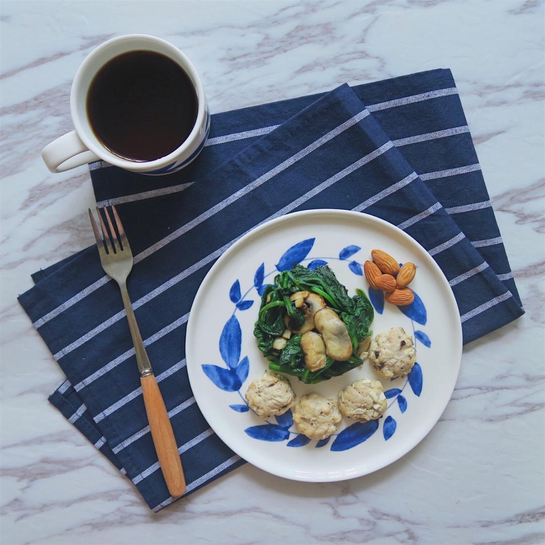 燙菠菜+雞胸丸子+巴旦木