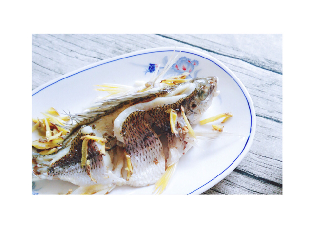 清蒸鱼耶 背上抹盐 加上姜直接蒸 第一次没加酱油水直接吃 很鲜很嫩