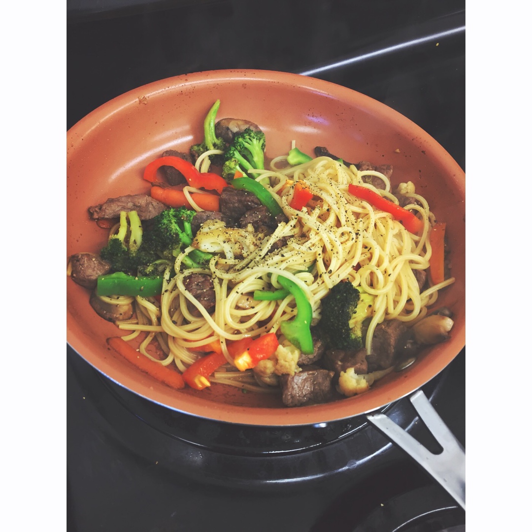 黑椒牛柳炒意面