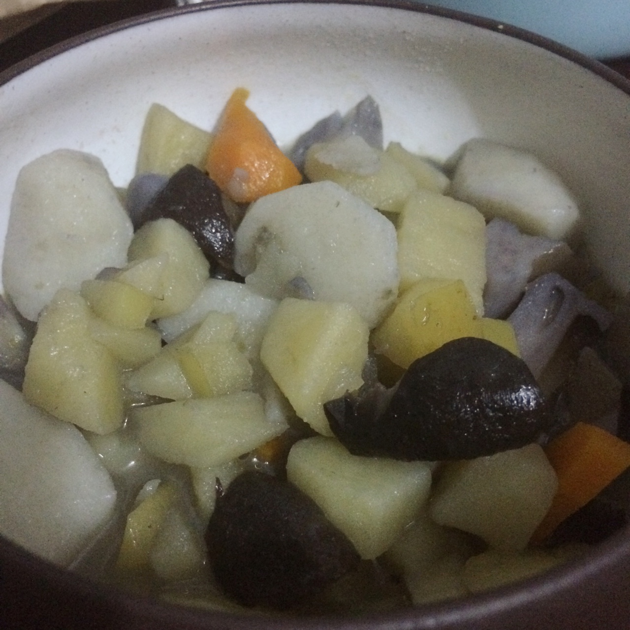 土豆下锅太早 有些糊了 还好豆角熟了