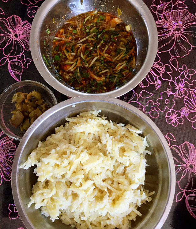 土豆太多摞起来了 面还有点少 火不能开太大