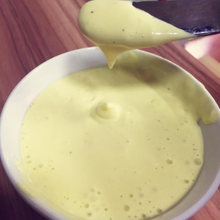 #自制沙拉酱# 总结 、 一开始很关键,旁边准备好热水,30秒间隔热敷。一定要把蛋液和糖粉打发,打至发...