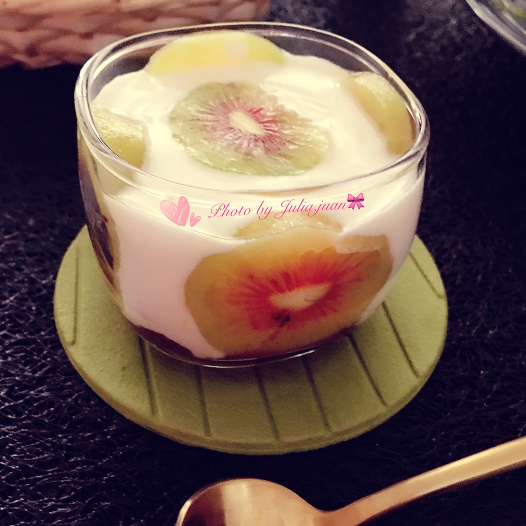 红心猕猴桃樱桃水果酸奶杯~