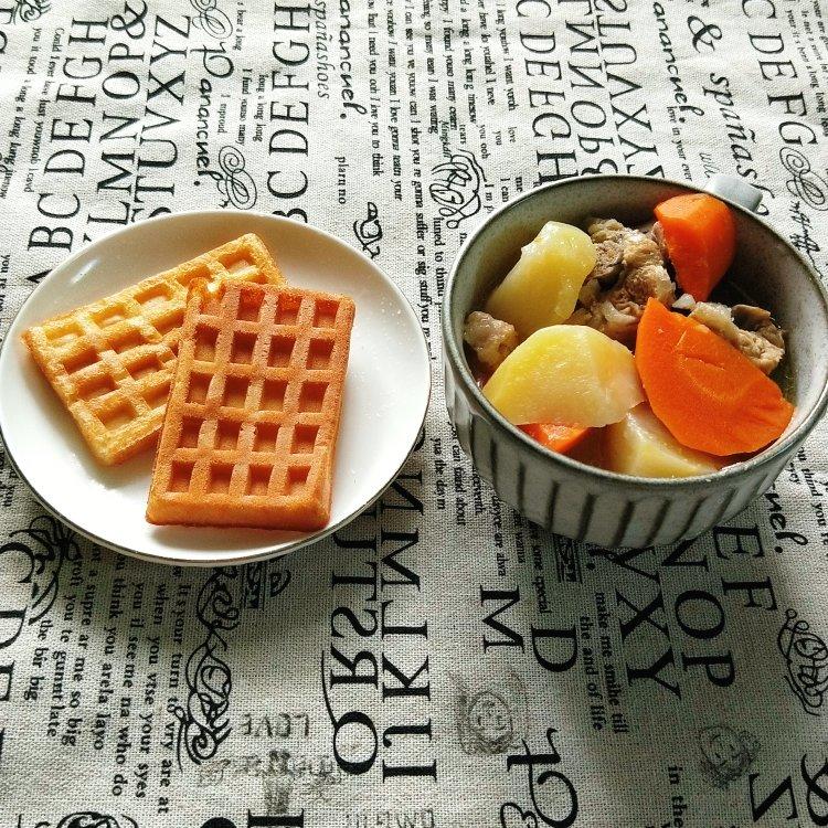 早餐有骨头汤,华夫饼。