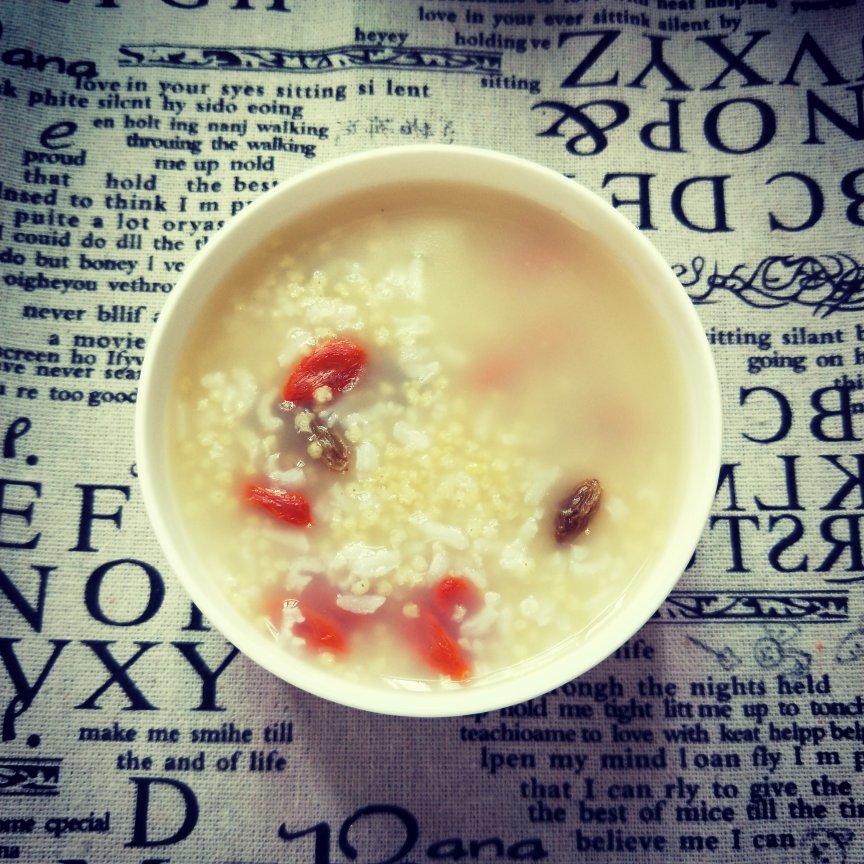 加入了大米小米枸杞葡萄干熬的粥。