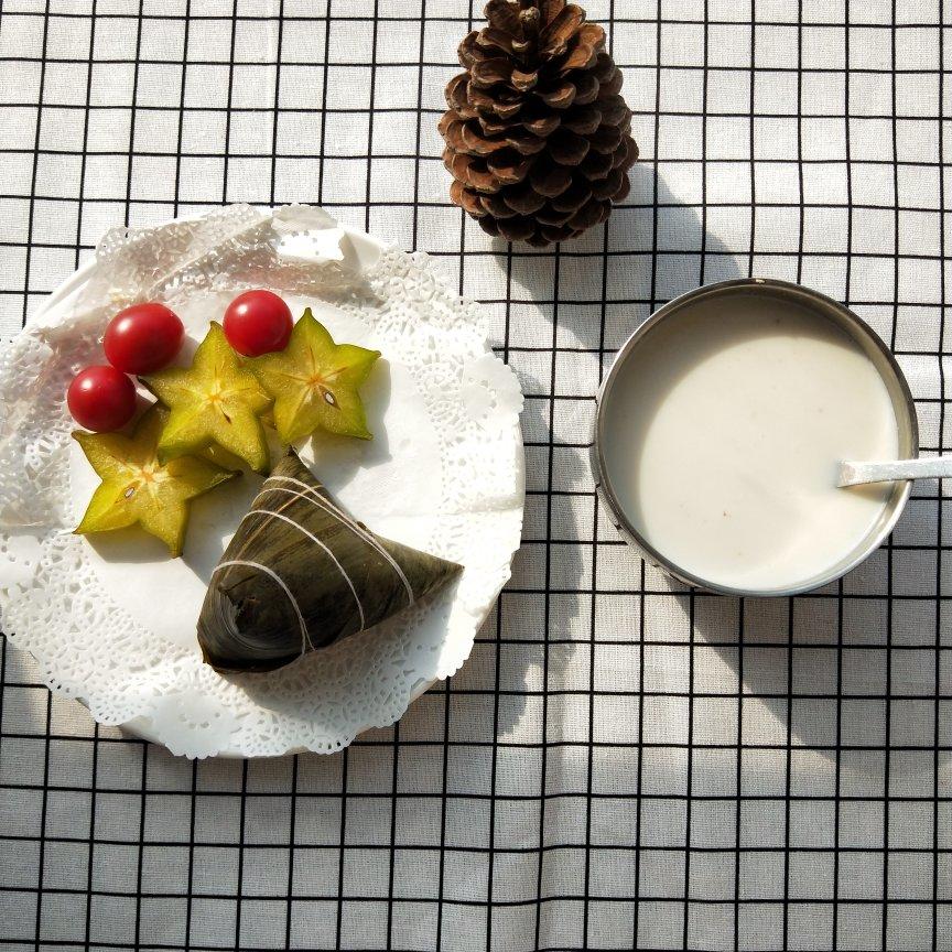 早餐有 看不见燕麦的牛奶燕麦,粽子,杨桃,圣女果。