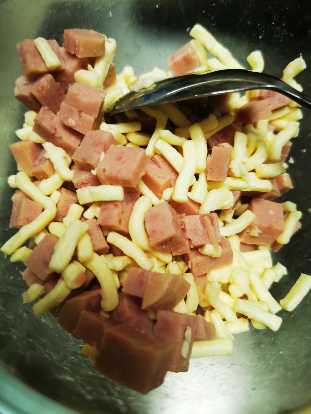 芝士火腿小餐包出炉啦~,小外孙最喜欢的面包之一,谢谢作者分享方子。