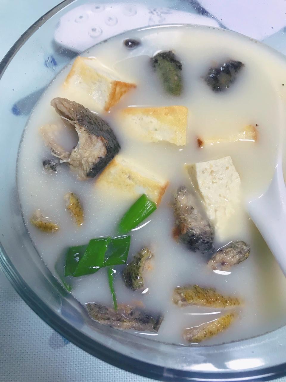 泥鳅豆腐汤。@_@第一次做,水一进去就是白的!