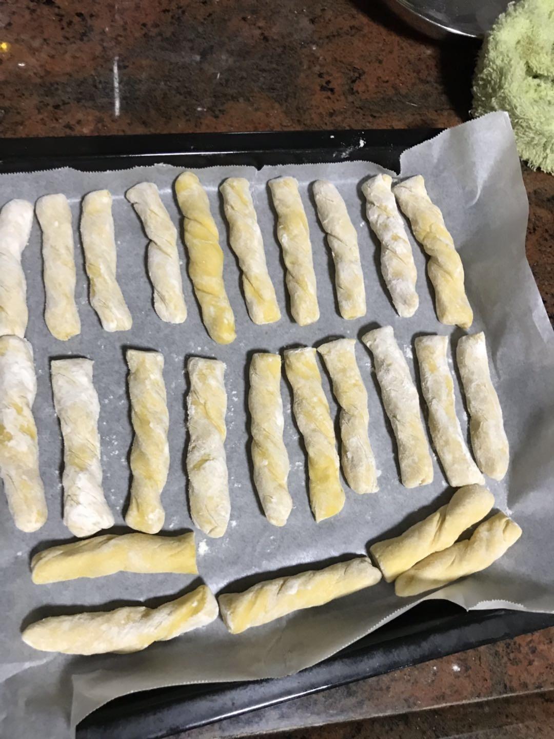 香蕉味的蛮好吃的~做好了自己先吃了2根~不过醒面后切条还是好容易粘手~慢慢来吧~喜欢孩子喜欢吃