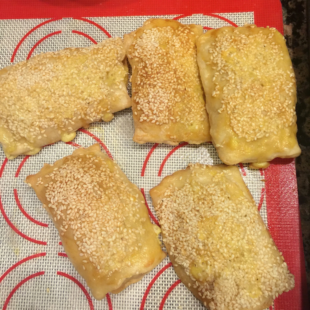 酥得掉渣—白芝麻甜烧饼&黑芝麻肉松烧饼,太好吃啦