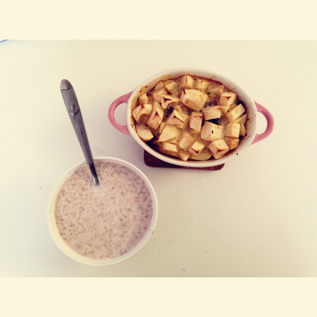 今天终于可以去跑步啦~跑完步回来预热烤箱,打了一个鸡蛋,加一些牛奶,把剩下的燕麦片全都放进去了,还有三块巧克力,一把蔓越...