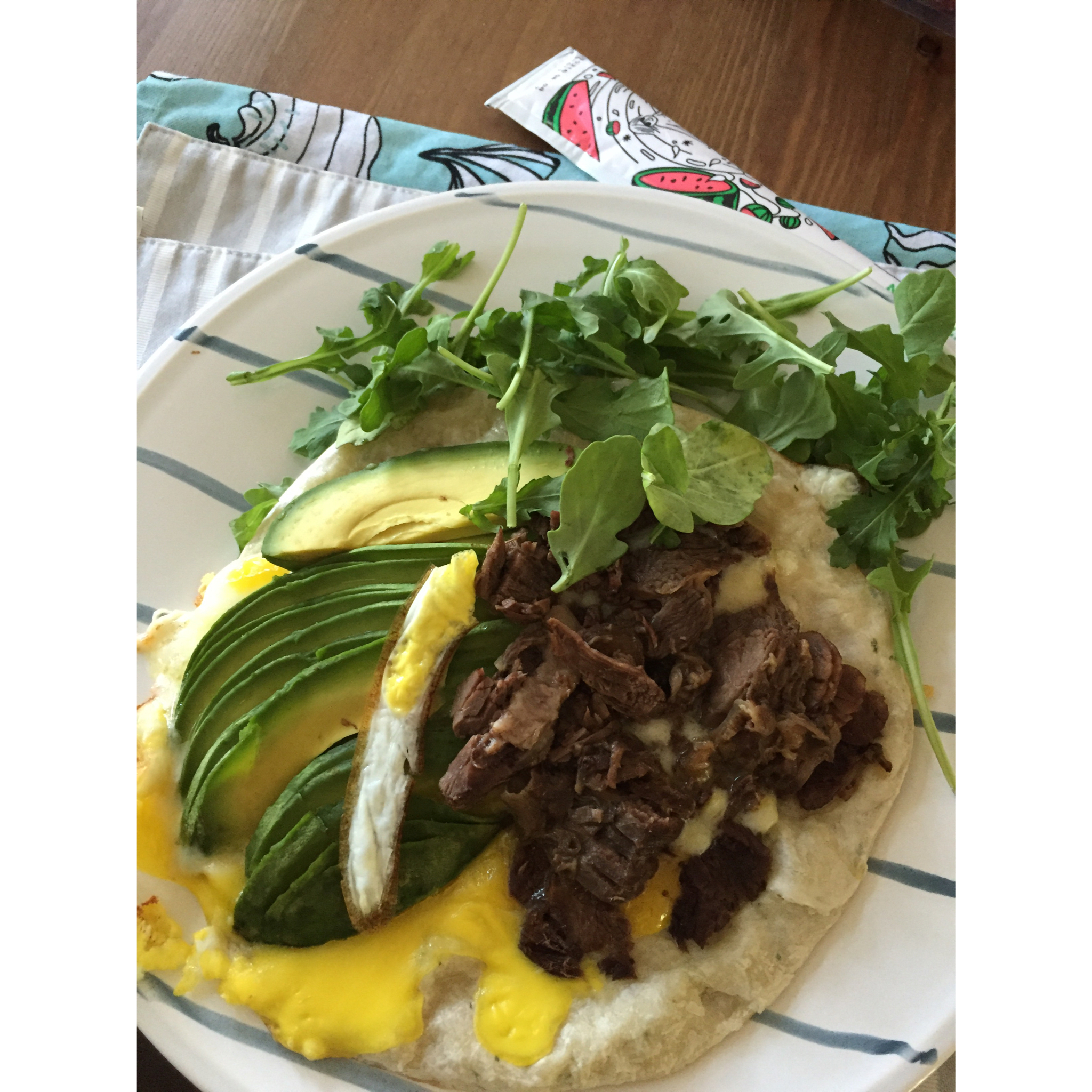 早餐饼 鸡蛋 芝士 卤牛肉 牛油果 芝麻菜
