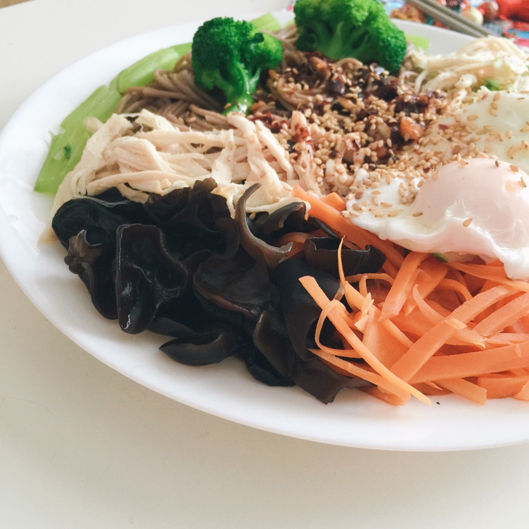 鸡丝荞麦凉面~荞麦面是一种自带逼格的面条🍜!