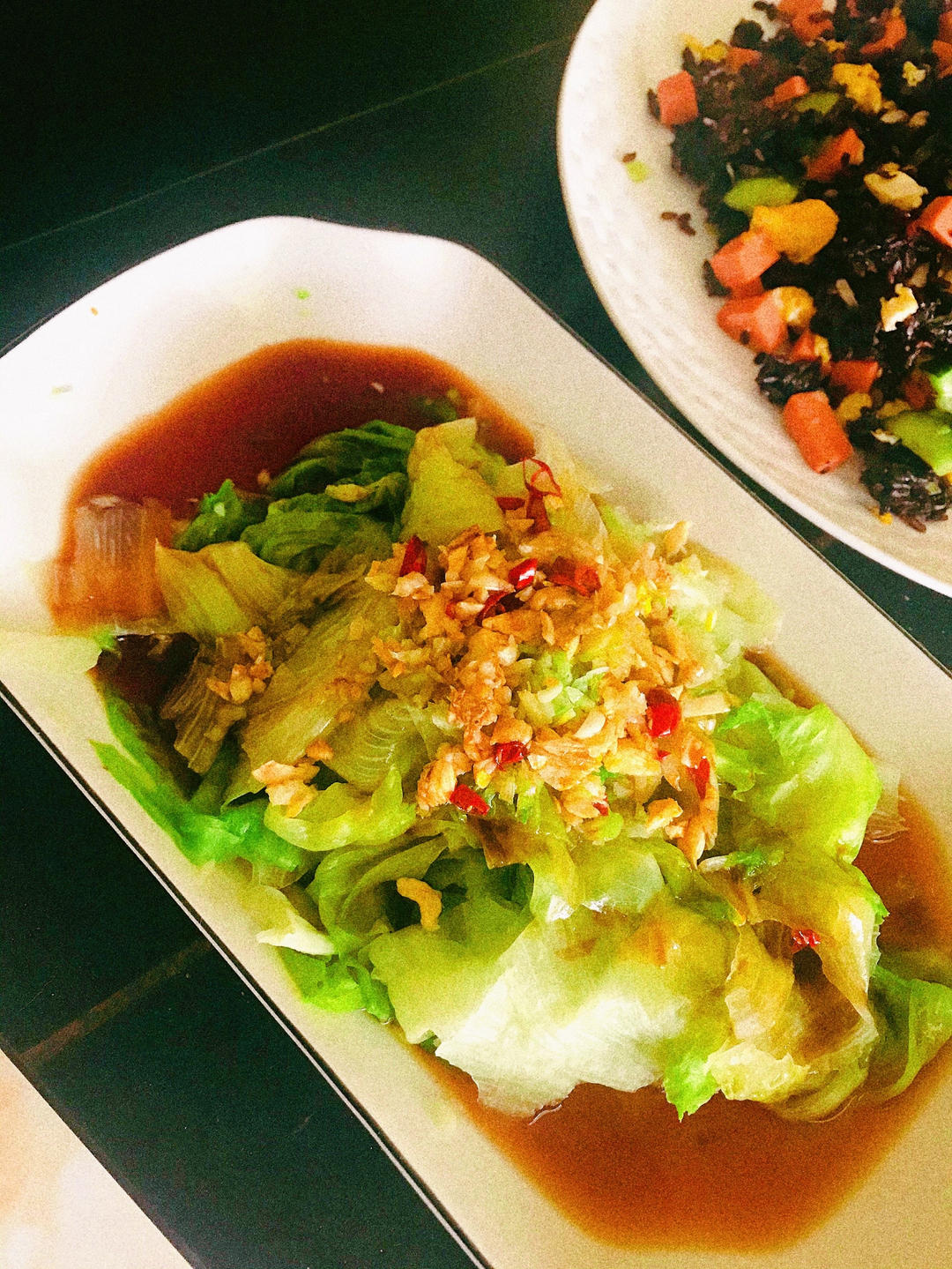 今日晚餐:青椒炒蛋,白灼生菜。