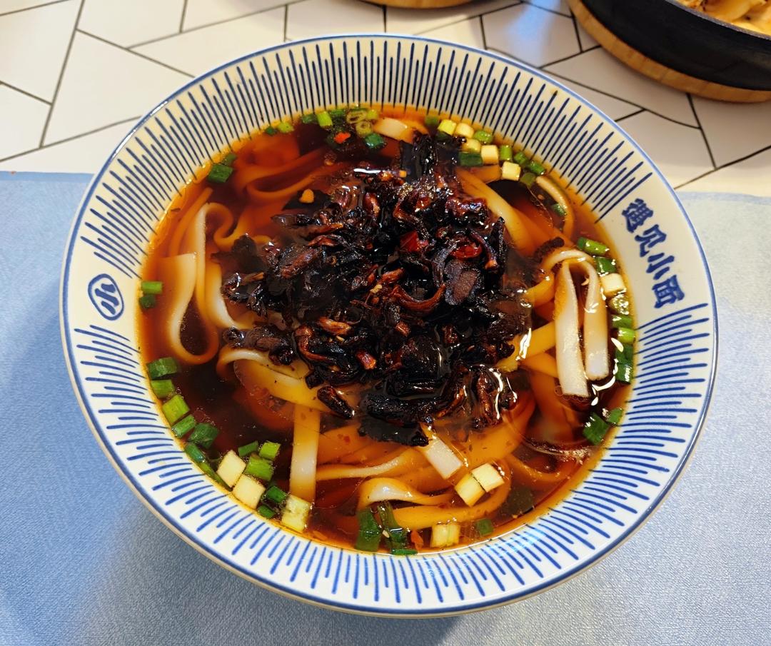 买了油牛肝菌,再买了点牛干巴一起炒成一个浇头,盖在粉上,太好吃了啊!